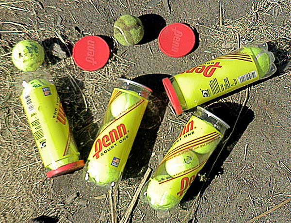 Tennis balls are pressurized at the factory and preserved in vacuum sealed cans. Low quality or defective tennis balls can loose their pressure quickly. When mushy ammo was discovered during this test, the shots were noted and the balls discarded. The Court One brand held up fairly well with brand new balls shooting about the same speeds as the used ones. High quality tennis balls are available which are designed to hold their pressure under heavy use. Special pressureless balls are also available which could provide durability and possibly higher velocities.