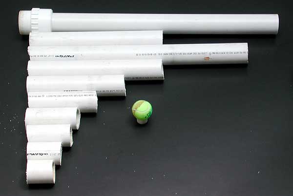 We were a little worried that the 12 foot barrel at .26:1 might backfire as did the longest barrel in the 1.5" C:B test. The fan was removed as a precaution and the first shots came in at 284fps and 145fps. The fan was put back in which showed an increase in velocity to 342fps. After that, the 12' barrel started to give some problems. Tennis balls were starting to get stuck about 2 feet from the muzzle. This may have been caused by mushy ammo or simply that the barrel was approaching maximum length.